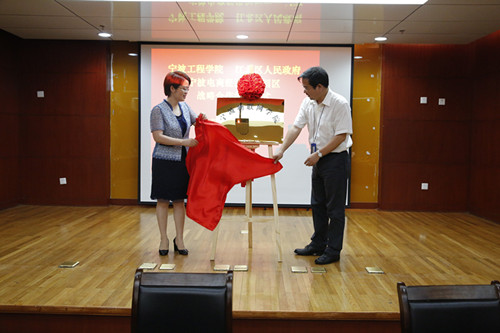 簽約授牌儀式上,柯總、張飛宇副區(qū)長(zhǎng)、鮑吉龍副院長(zhǎng)代表三方簽署三方合作協(xié)議。之后,江北區(qū)區(qū)長(zhǎng)丁曉芳和寧波工程學(xué)院院長(zhǎng)呂忠達(dá)共同為寧波物聯(lián)網(wǎng)學(xué)院揭牌。