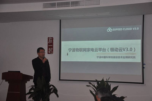 寧波中國(guó)科學(xué)院信息技術(shù)應(yīng)用研究院 傳感技術(shù)研發(fā)中心主任潘意杰為大家?guī)?lái)了《寧波物聯(lián)網(wǎng)家電云平臺(tái)—極動(dòng)云V3.0》的主題演講,跟隨PPT一頁(yè)頁(yè)播放,潘主任介紹了極動(dòng)云平臺(tái)誕生的前因后果、核心內(nèi)容、競(jìng)爭(zhēng)優(yōu)勢(shì)、發(fā)展歷程及已取得的成果、榮譽(yù)、效益等等,最后向大家宣布了極動(dòng)云平臺(tái)的理念——我們不做平臺(tái),我們只提供服務(wù),引起大家的共鳴。