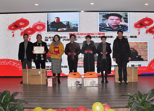 晚會將要結(jié)束之際,一份來自產(chǎn)業(yè)園企業(yè)、客戶和外省干粉項目部聯(lián)合錄制的視頻短片給現(xiàn)場帶來感動。他們給柯力帶來新年祝福,也對柯力過去一年的工作表示感謝和肯定。晚會壓軸,柯力高層領導、產(chǎn)業(yè)園企業(yè)代表和現(xiàn)場員工互動演唱的《真心英雄》將春晚推向高潮,春晚在充滿期待的一等獎抽取中圓滿落幕。
