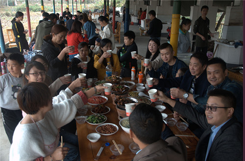 活動(dòng)過程中大家分工協(xié)作,女同事相互配合著洗菜、切菜、炒菜,男同事則忙著生火、搬桌椅、擺餐具,場面好不熱鬧。大家都拿出了“十八般武藝”,充分展示出自己的動(dòng)手能力,其中不乏技藝嫻熟的快刀手、手藝高超的燒烤師、廚藝精湛的男大廚。歡聲笑語伴隨著縷縷炊煙縈繞在空中,大家吃著親手做出來的各種美味佳肴,聊著工作和生活中遇到的趣事,其樂融融!