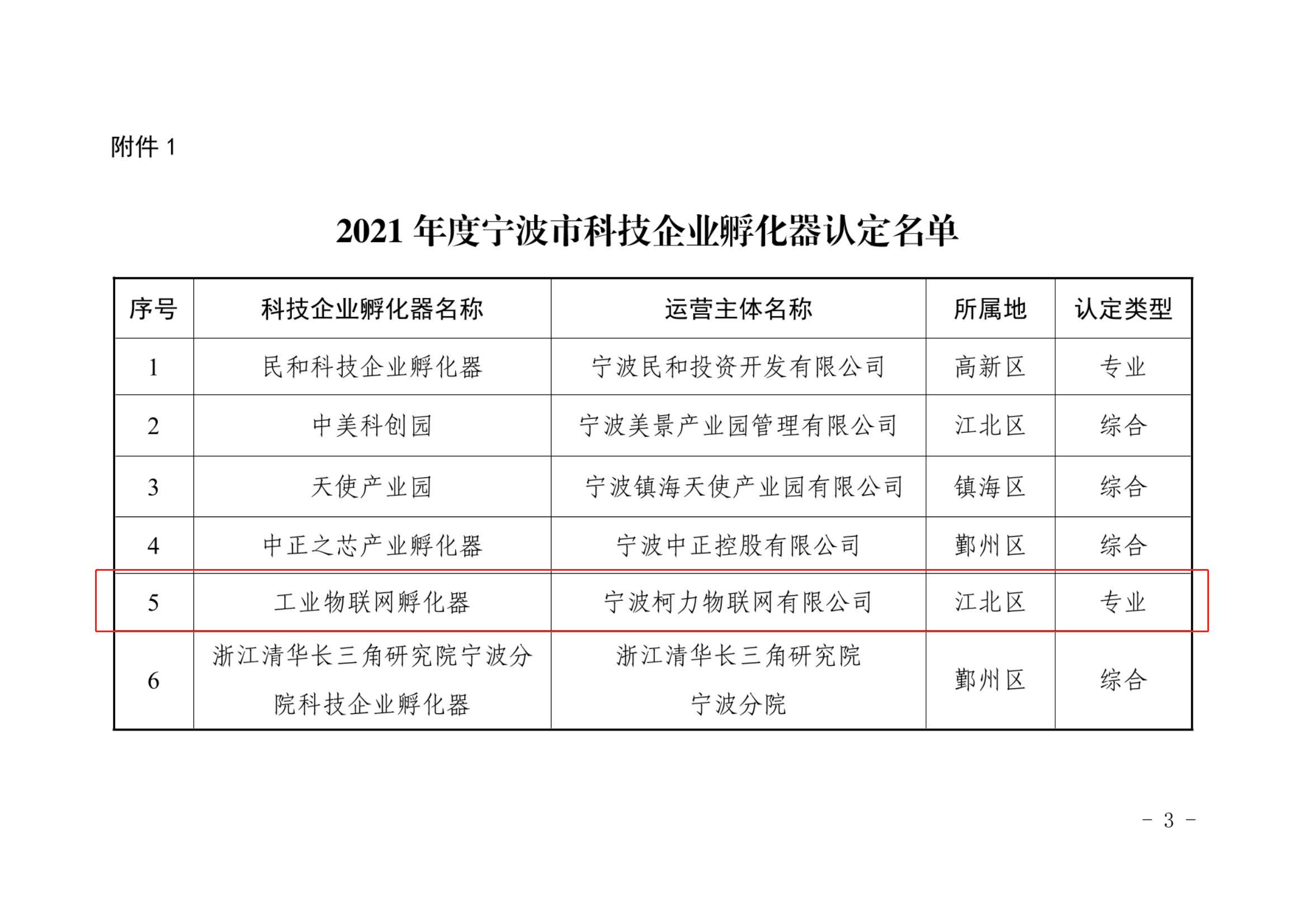 經(jīng)企業(yè)申報,科技部門推薦,專家評價和網(wǎng)上公示,我司全資子公司寧波柯力物聯(lián)網(wǎng)有限公司運營的工業(yè)物聯(lián)網(wǎng)孵化器成功通過寧波市科學技術局認定,入選市級科技企業(yè)孵化器。