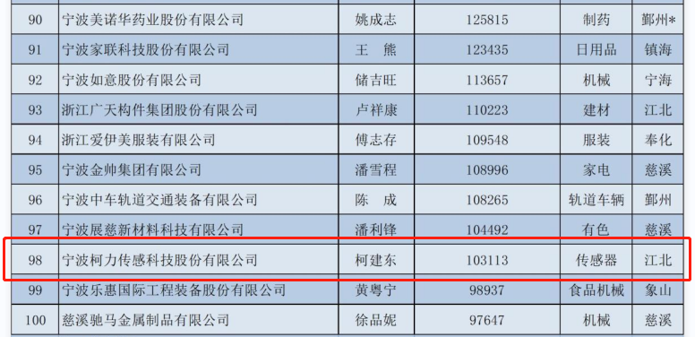 8月31日上午,2022寧波市企業(yè)百?gòu)?qiáng)榜單新鮮出爐,柯力傳感登榜“2022寧波市競(jìng)爭(zhēng)力企業(yè)百?gòu)?qiáng)”第19名,“2022寧波市制造業(yè)企業(yè)百?gòu)?qiáng)”第98名。
