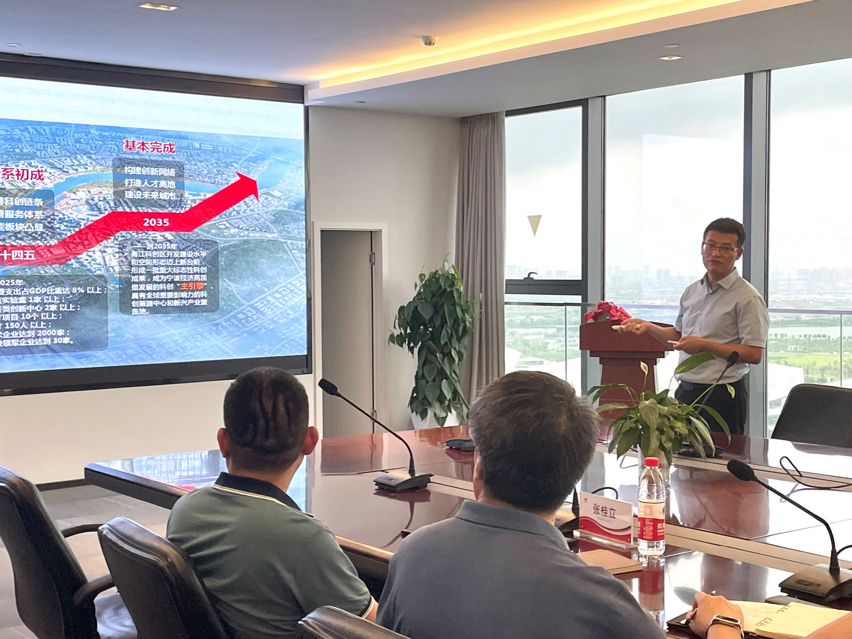 首先,甬江科創(chuàng)辦規(guī)劃建設(shè)部部長(zhǎng)方永軍詳細(xì)介紹了甬江科創(chuàng)區(qū)的建設(shè)意義、已有基礎(chǔ)、發(fā)展目標(biāo)以及當(dāng)前規(guī)劃。接著,徐云副秘書長(zhǎng)表示,甬江科創(chuàng)區(qū)是寧波打造“全球智造創(chuàng)新之都”最重要的平臺(tái),目標(biāo)定位為“立足寧波、服務(wù)區(qū)域、面向未來的世界一流科創(chuàng)策源中心”。甬江科創(chuàng)區(qū)搶抓變革之機(jī),打造科技創(chuàng)新引擎,已具備最豐富的創(chuàng)新資源、最齊全的要素配置和最強(qiáng)勁的發(fā)展動(dòng)能。