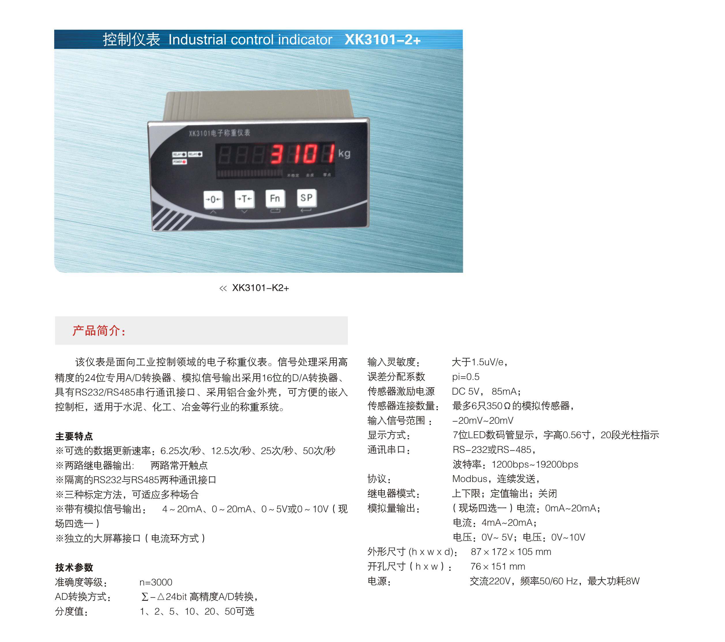 產(chǎn)品型號(hào): 儀表 XK3101-K2+