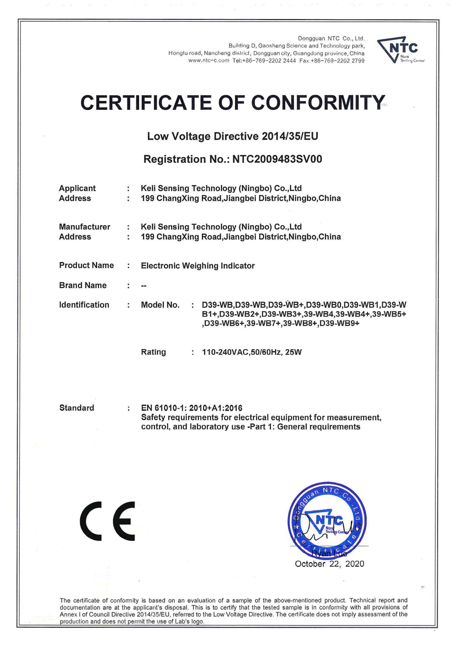 CE認(rèn)證 D39-WB(LVD證書)